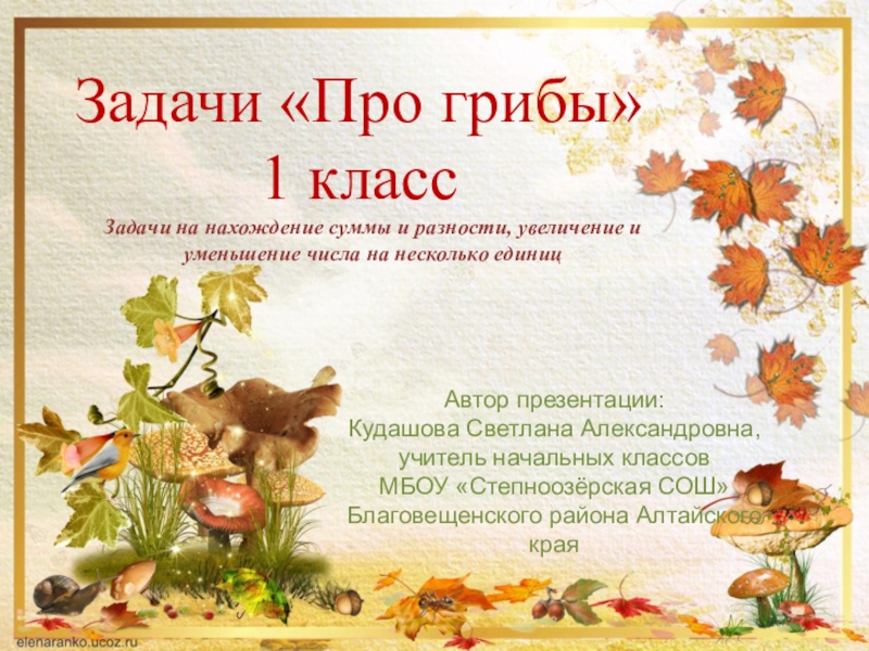 Задачи на нахождение суммы и разности, увеличение и уменьшение числа на несколько единиц