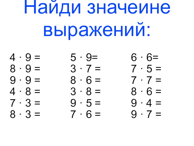 8 · 3 = 7 · 6 = 9 · 7 =