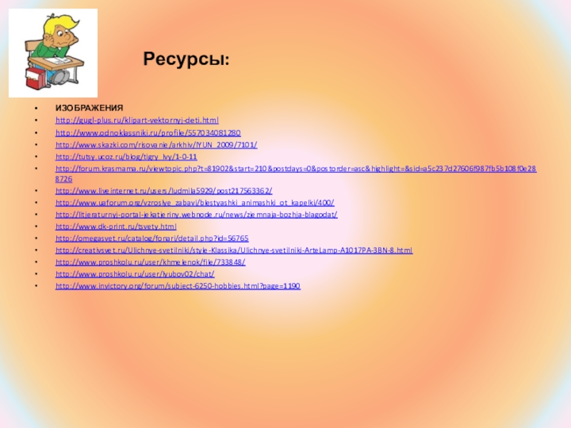 Это сайт презентаций, где можно хранить и обмениваться своими презентациями, докладами, проектами, шаблонами в формате PowerPoint с другими пользователями. Мы помогаем школьникам, студентам, учителям, преподавателям хранить и обмениваться учебными материалами.