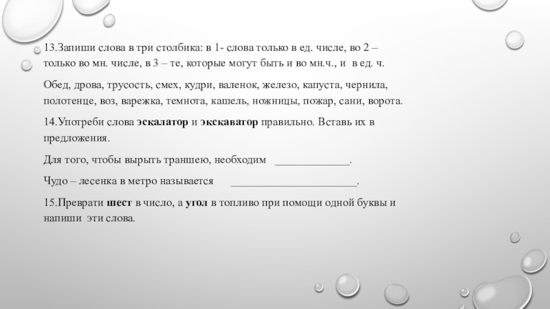 Слайд 1013.Запиши слова в три столбика: в 1- слова только в ед.
