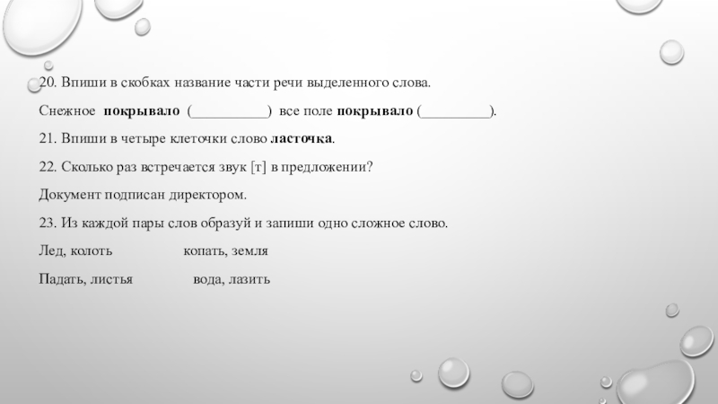Слайд 1220. Впиши в скобках название части речи выделенного слова.