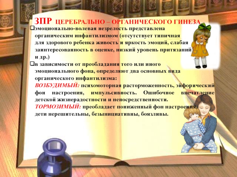 с активным торможением аффекта, не стимулируется познавательная деятельность,