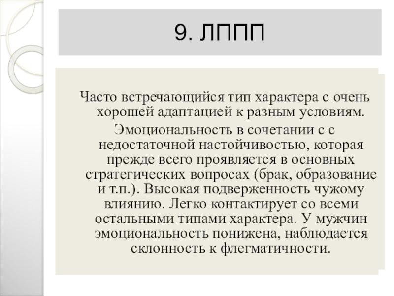 Часто встречающийся тип характера с очень хорошей адаптацией к разным условиям.