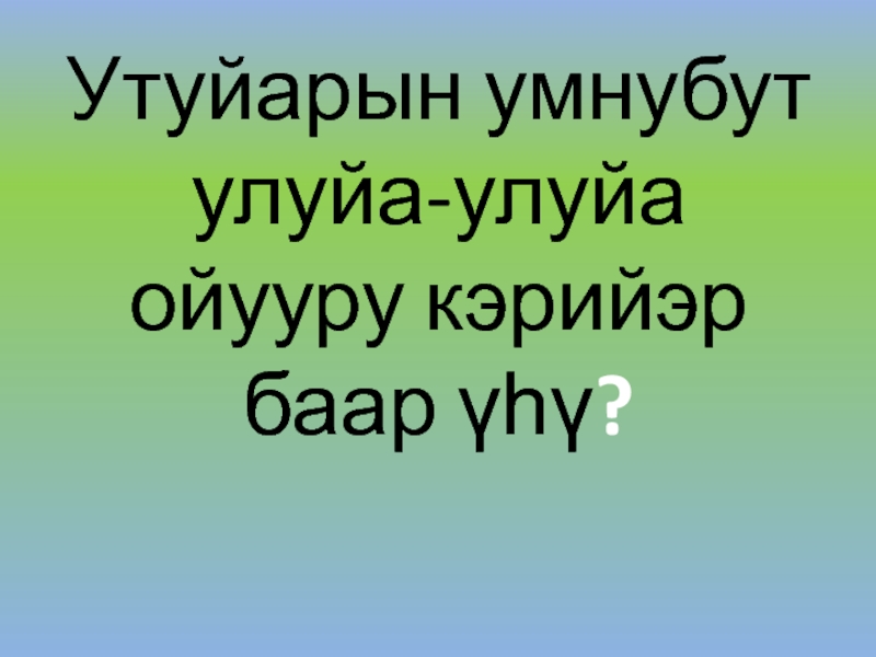 Слайд 12Утуйарын умнубут улуйа-улуйа ойууру кэрийэр баар үһү?