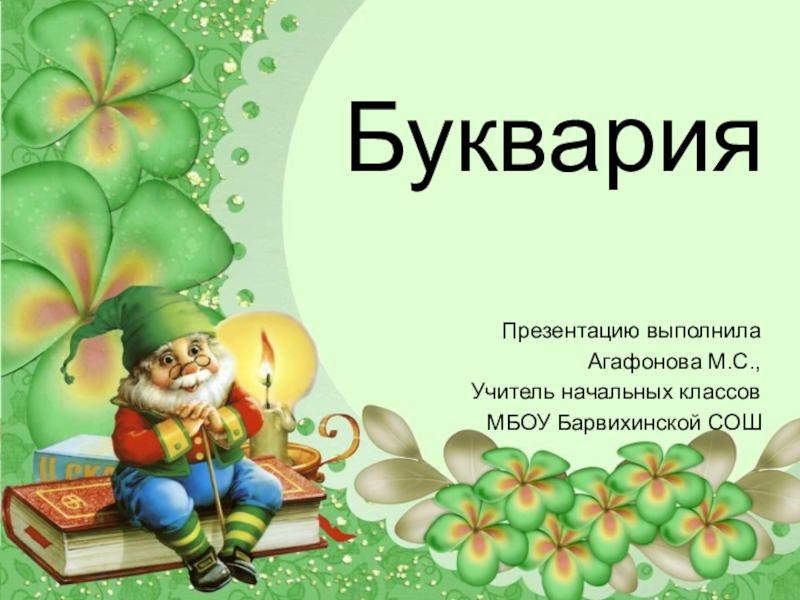 БукварияПрезентацию выполнилаАгафонова М.С.,Учитель начальных классовМБОУ Барвихинской СОШ
