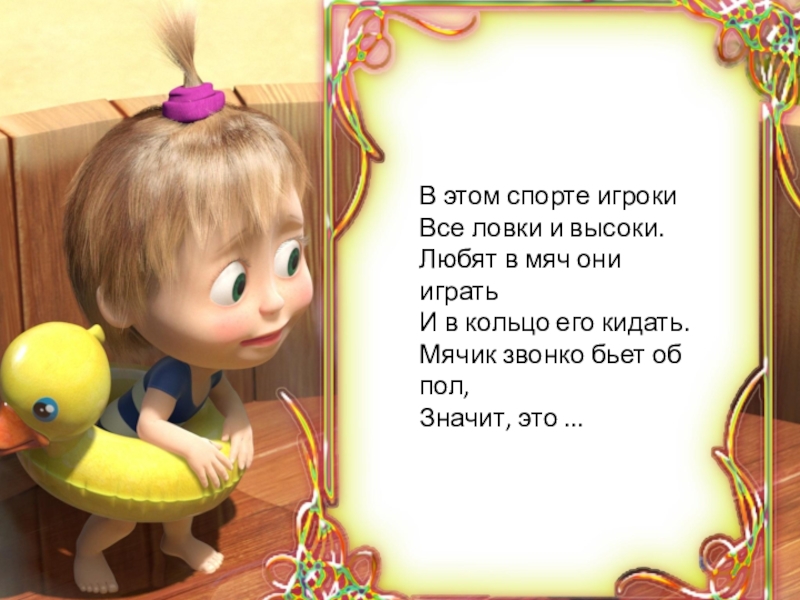играть И в кольцо его кидать. Мячик звонко бьет об пол, Значит, это ...