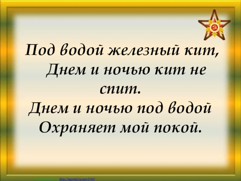 Слайд 11 Под водой железный кит, Днем и ночью кит не