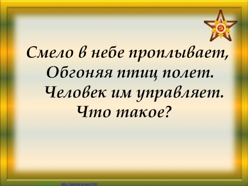 Слайд 3 Смело в небе проплывает, Обгоняя птиц полет.