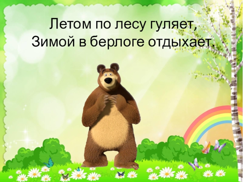 Слайд 5Летом по лесу гуляет, Зимой в берлоге отдыхает.