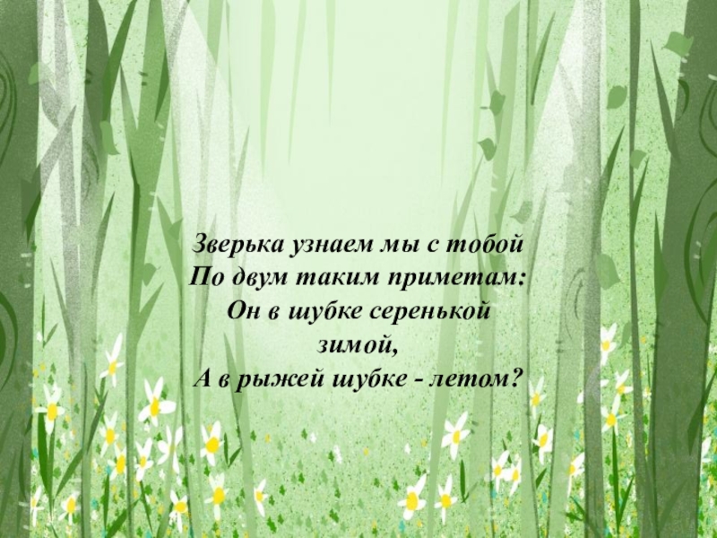 Зверька узнаем мы с тобойПо двум таким приметам:Он в шубке серенькой зимой,А в рыжей шубке - летом?