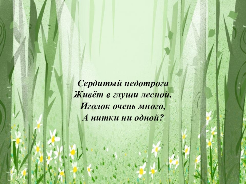 Сердитый недотрогаЖивёт в глуши лесной.Иголок очень много,А нитки ни одной?