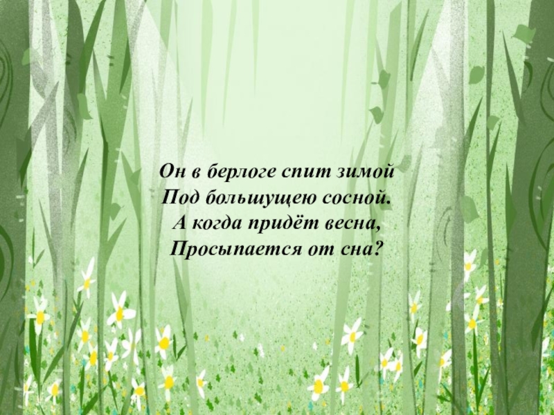 Он в берлоге спит зимойПод большущею сосной.А когда придёт весна,Просыпается от сна?