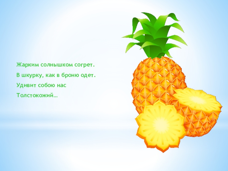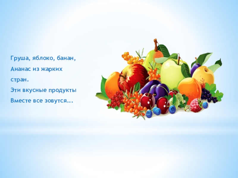 Груша, яблоко, банан,Ананас из жарких стран.Эти вкусные продуктыВместе все зовутся...