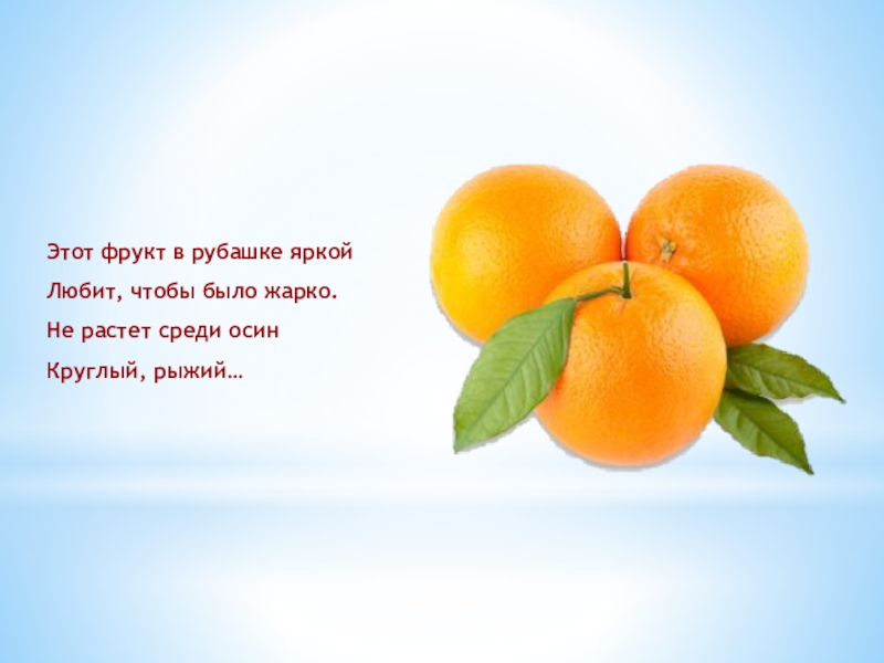 Этот фрукт в рубашке яркойЛюбит, чтобы было жарко.Не растет среди осинКруглый, рыжий…