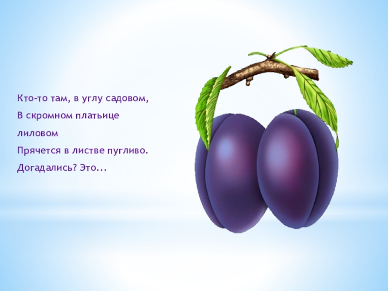 Кто-то там, в углу садовом,В скромном платьице лиловомПрячется в листве пугливо.Догадались? Это...