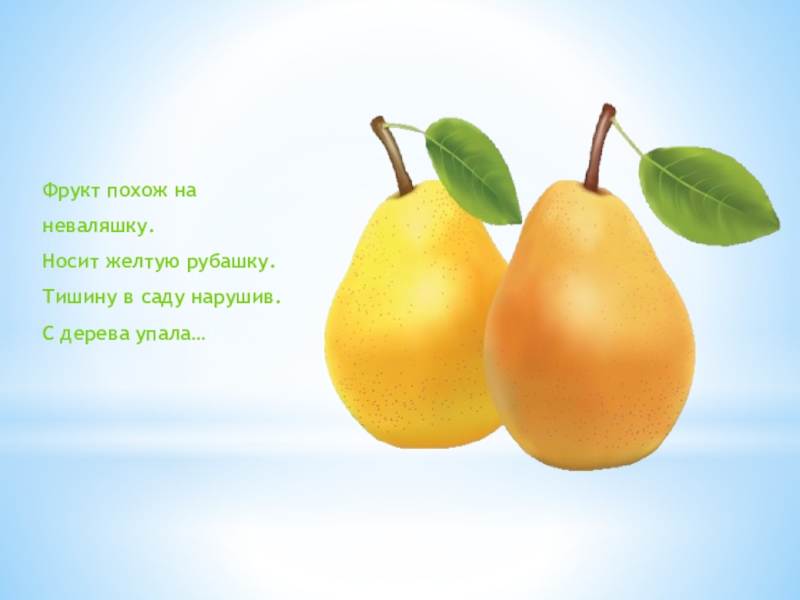 Фрукт похож на неваляшку.Носит желтую рубашку.Тишину в саду нарушив.С дерева упала…