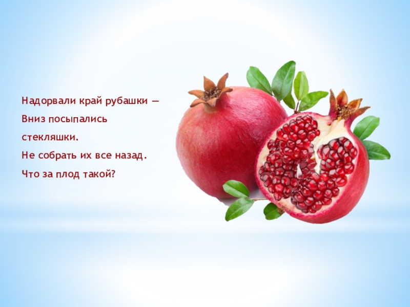Надорвали край рубашки —Вниз посыпались стекляшки.Не собрать их все назад.Что за плод такой?