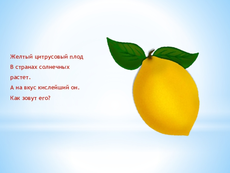 Желтый цитрусовый плодВ странах солнечных растет.А на вкус кислейший он.Как зовут его?