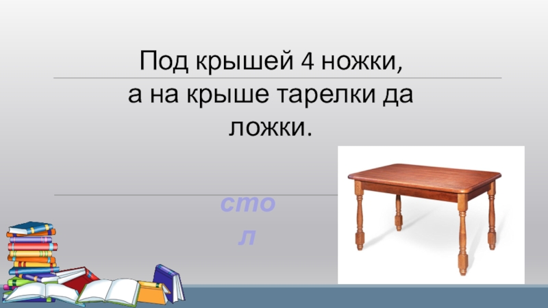 Слайд 6Под крышей 4 ножки,