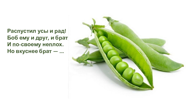 Распустил усы и рад! Боб ему и друг, и брат, И по-своему неплох. Но вкуснее брат —