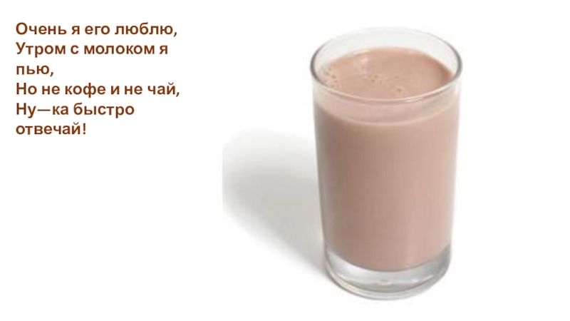 Очень я его люблю,Утром с молоком я пью,Но не кофе и не чай,Ну—ка быстро отвечай!