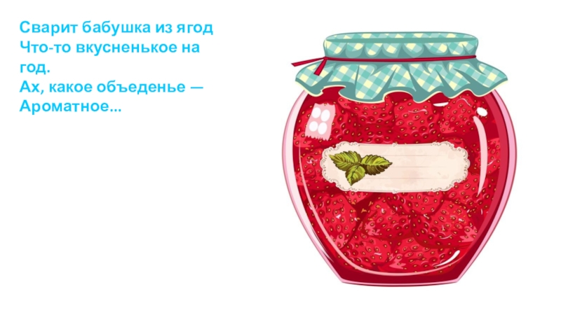 Сварит бабушка из ягодЧто-то вкусненькое на год.Ах, какое объеденье —Ароматное...