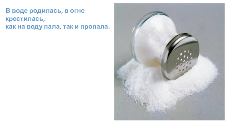В воде родилась, в огне крестилась,как на воду пала, так и пропала.