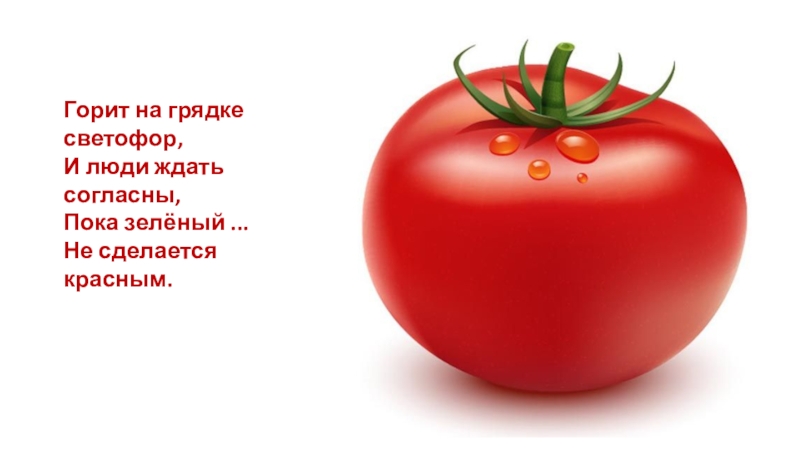 Горит на грядке светофор,И люди ждать согласны,Пока зелёный ...Не сделается красным.
