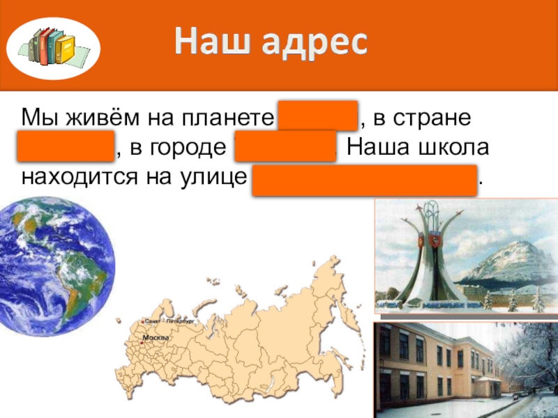 Мы живём на планете Земля, в стране Россия , в городе Тюмень. Наша школа находится на улице