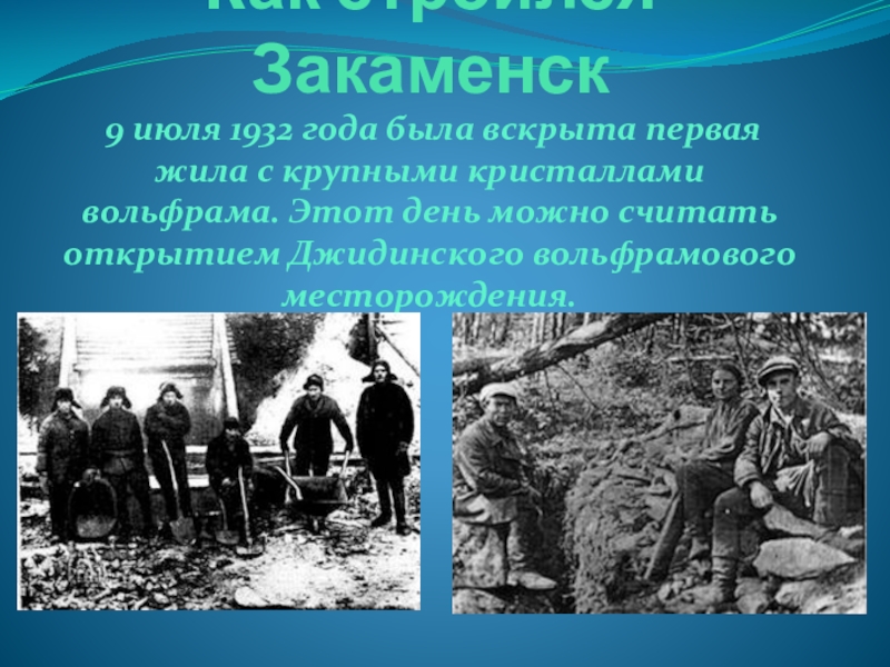 с крупными кристаллами вольфрама. Этот день можно считать открытием Джидинского вольфрамового месторождения.