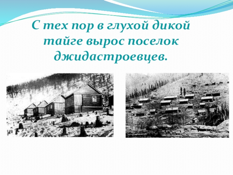 Слайд 5С тех пор в глухой дикой тайге вырос поселок джидастроевцев.