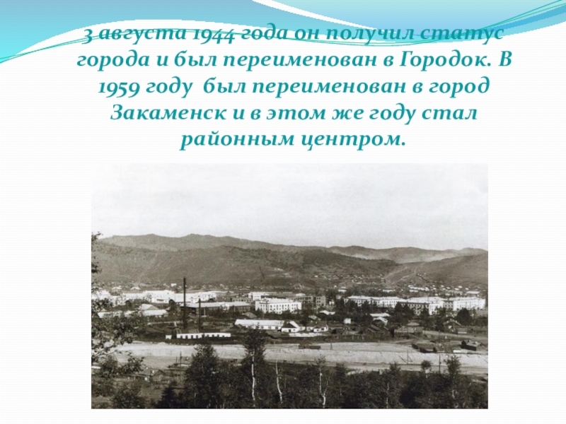 в Городок. В 1959 году был переименован в город Закаменск и в этом же году стал районным центром.