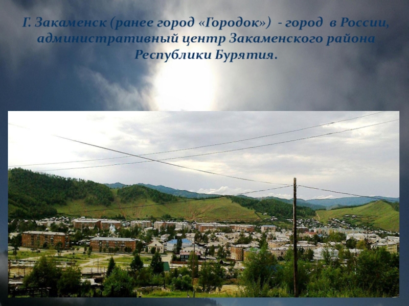 Слайд 7Г. Закаменск (ранее город «Городок») - город в России, административный центр