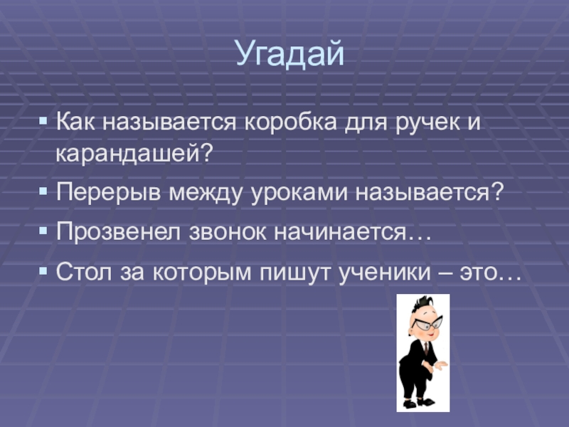 Это сайт презентаций, где можно хранить и обмениваться своими презентациями, докладами, проектами, шаблонами в формате PowerPoint с другими пользователями. Мы помогаем школьникам, студентам, учителям, преподавателям хранить и обмениваться учебными материалами.