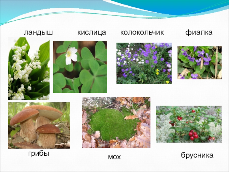 ландышкислицабрусникафиалкагрибыколокольчикмох