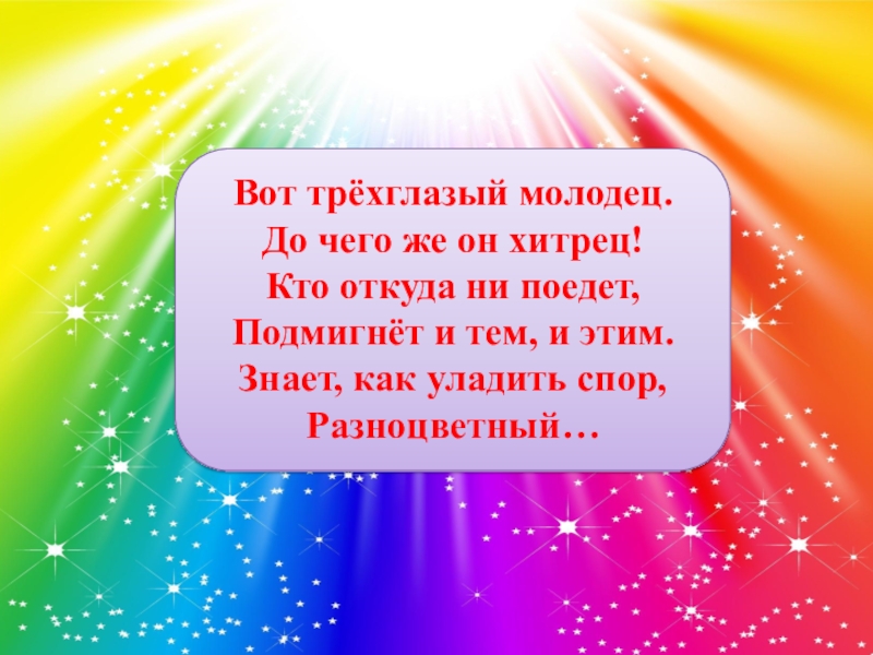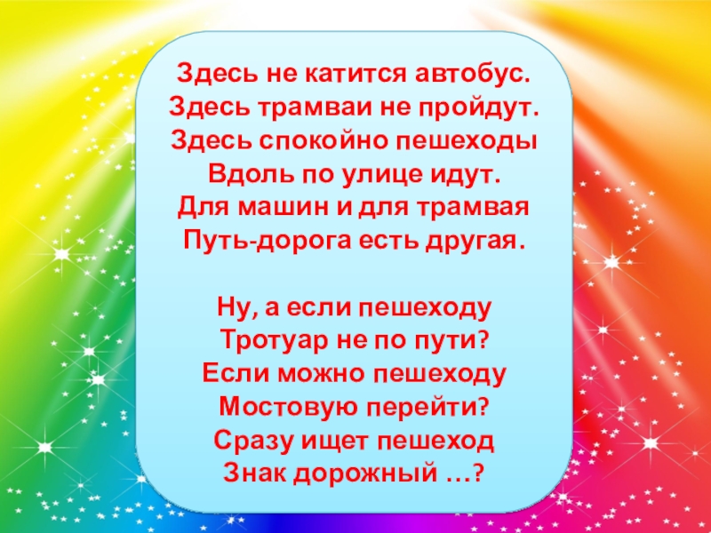 Красный свет нам «Стой!» кричит, ждать зелёного велит.