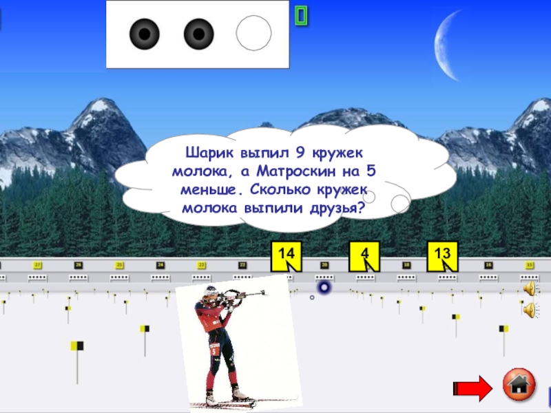 14413Шарик выпил 9 кружек молока, а Матроскин на 5 меньше. Сколько кружек молока выпили друзья?
