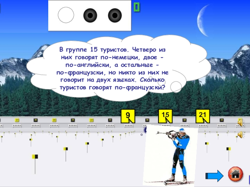 по-английски, а остальные - по-французски, но никто из них не говорит на двух языках. Сколько туристов говорят по-французски?