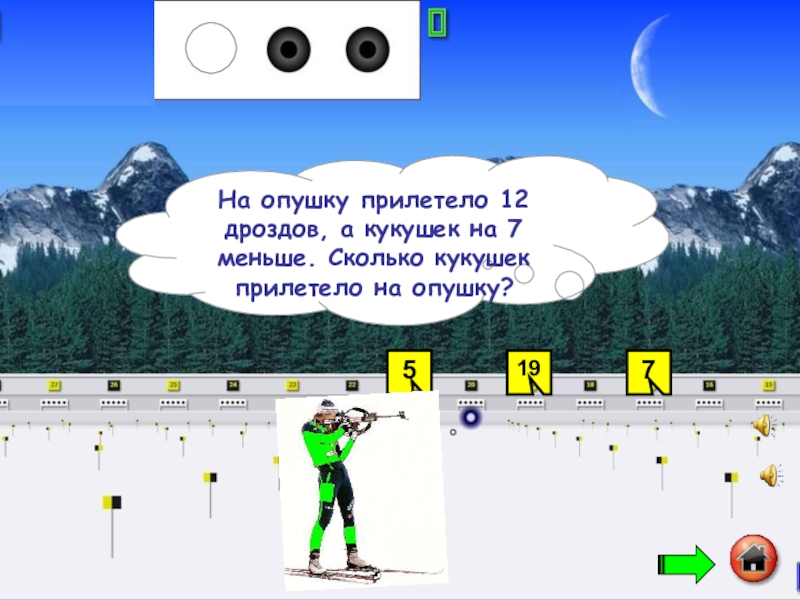 5197На опушку прилетело 12 дроздов, а кукушек на 7 меньше. Сколько кукушек прилетело на опушку?