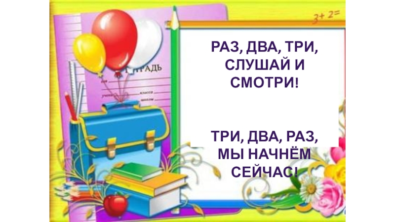 Раз, два, три, слушай и смотри!Три, два, раз,Мы начнём сейчас!