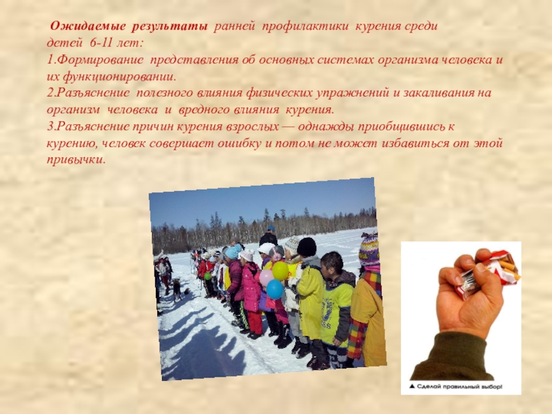Слайд 7 Ожидаемые результаты ранней профилактики курения среди