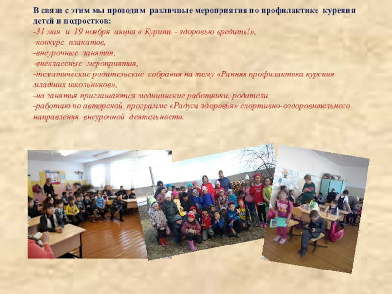 Слайд 6В связи с этим мы проводим различные мероприятия по профилактике курения