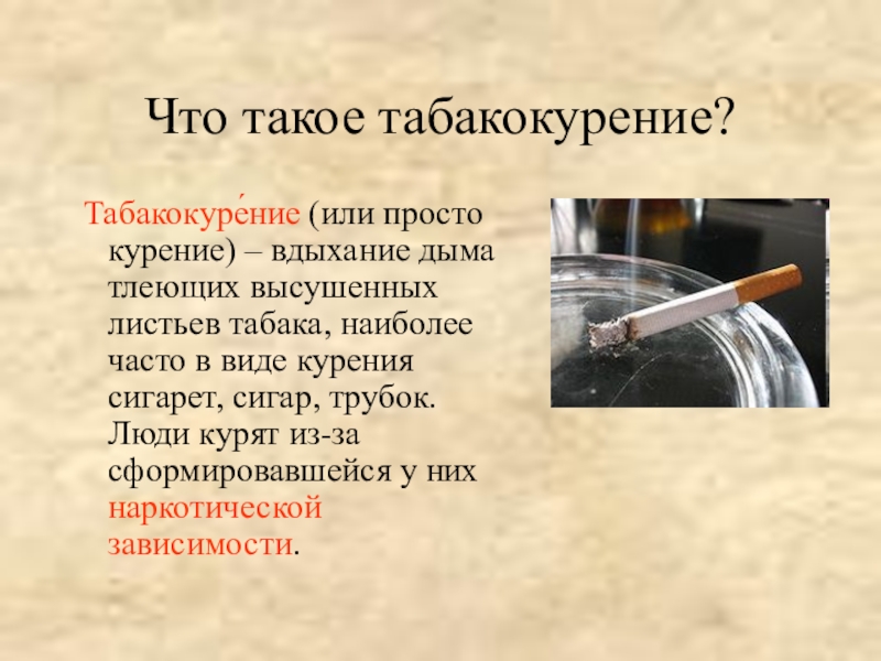 Слайд 13Что такое табакокурение?