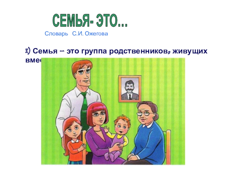 Слайд 41) Семья – это группа родственников, живущих вместе.