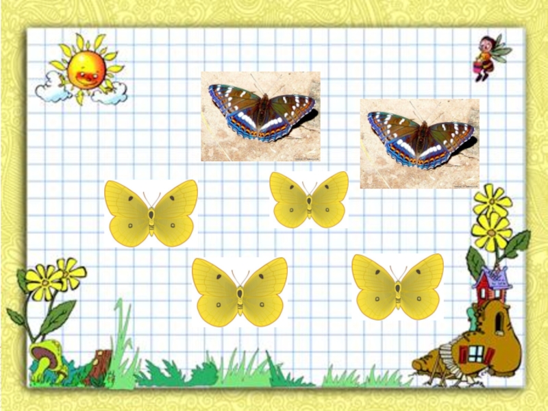 Слайд 6Поможем зайчику, гномику и бабочке решить примеры