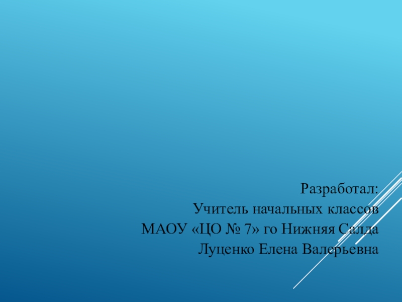 Разработал:Учитель начальных классовМАОУ «ЦО № 7» го Нижняя СалдаЛуценко Елена Валерьевна