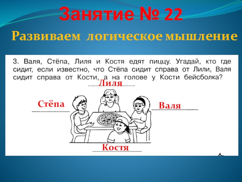 Занятие № 22Стёпа Костя Лиля Валя Развиваем логическое мышление