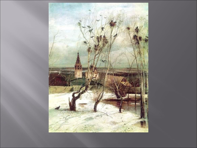 Презентация, доклад занятия на тему: Знакомство с картиной Саврасова А.К. Грачи прилетели. курса Образ Родины