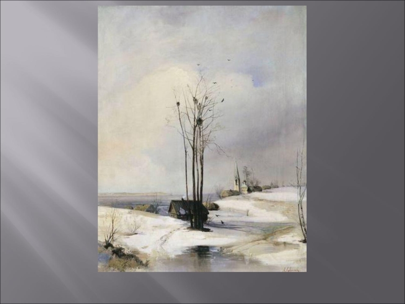 Слайд 25История создания картины . Первоначальные этюды к картине «Грачи прилетели» А.К.Саврасов