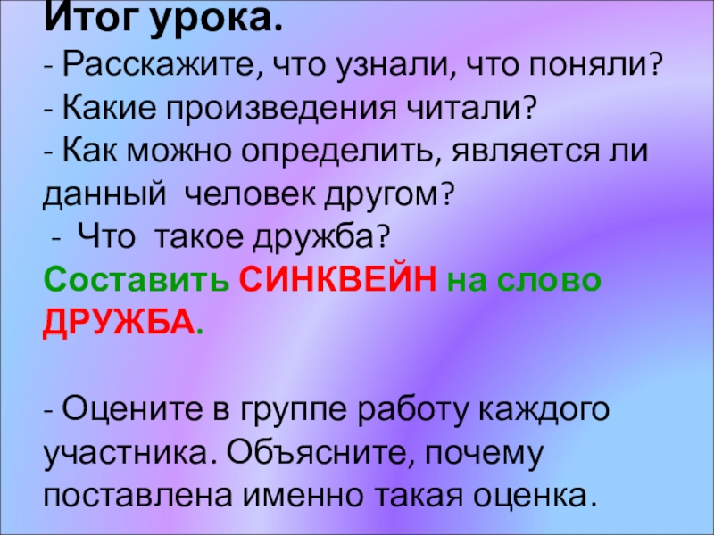 - Как вы понимаете фразу: «Видно, ваша дружба до первого дождя!»